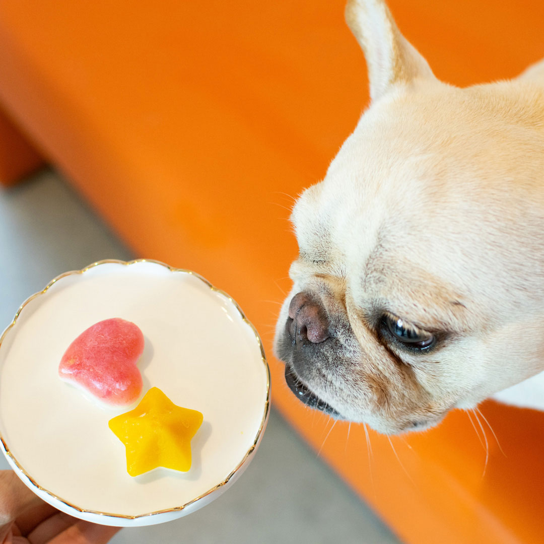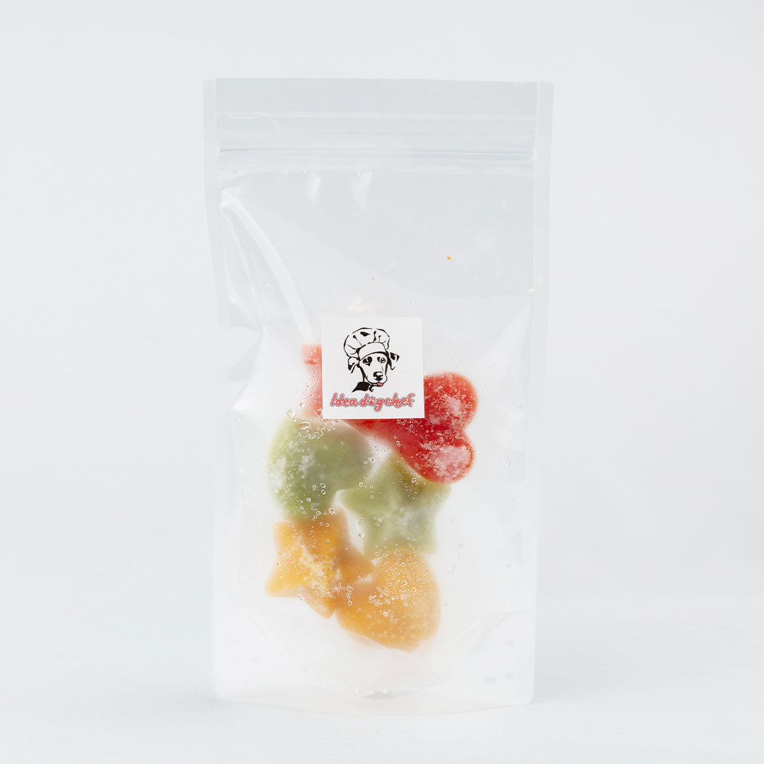 ワンちゃんが大好きなヨーグルトと、健康に配慮した3種の野菜の2層構造。暑い夏から、水分摂取量が少なくなりがちな冬まで。1パック6ピース入りでお友だちとの集まりにも最適です。